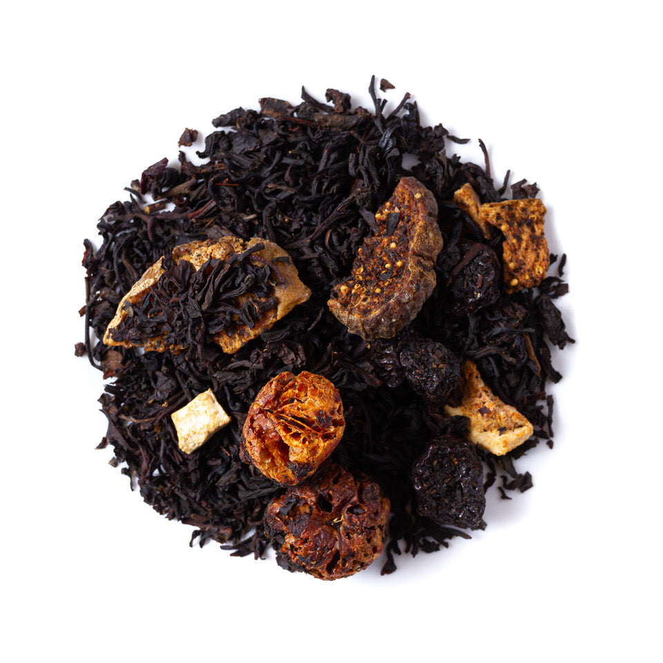 Black tea, fig pieces, sour cherries, acerola cherries, flavoring.